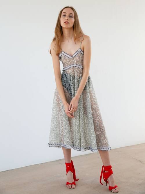 One of a kind lace patchwork blouse with ruffled double short cup sleeves, handkerchief style side panels, loose silhouette